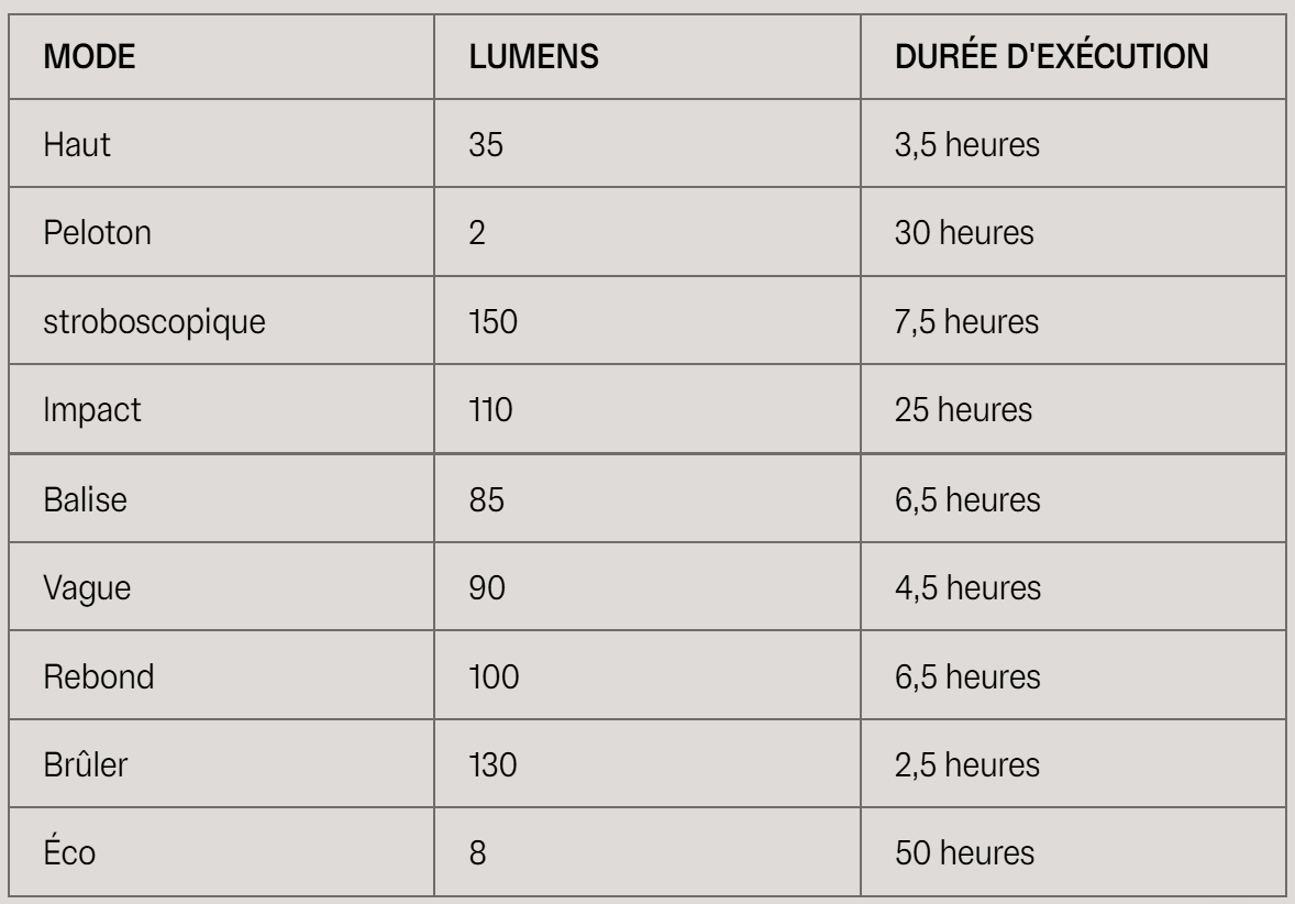 - Feu puissant avec 9 modes d'éclairage accrocheurs (voir photo produit)